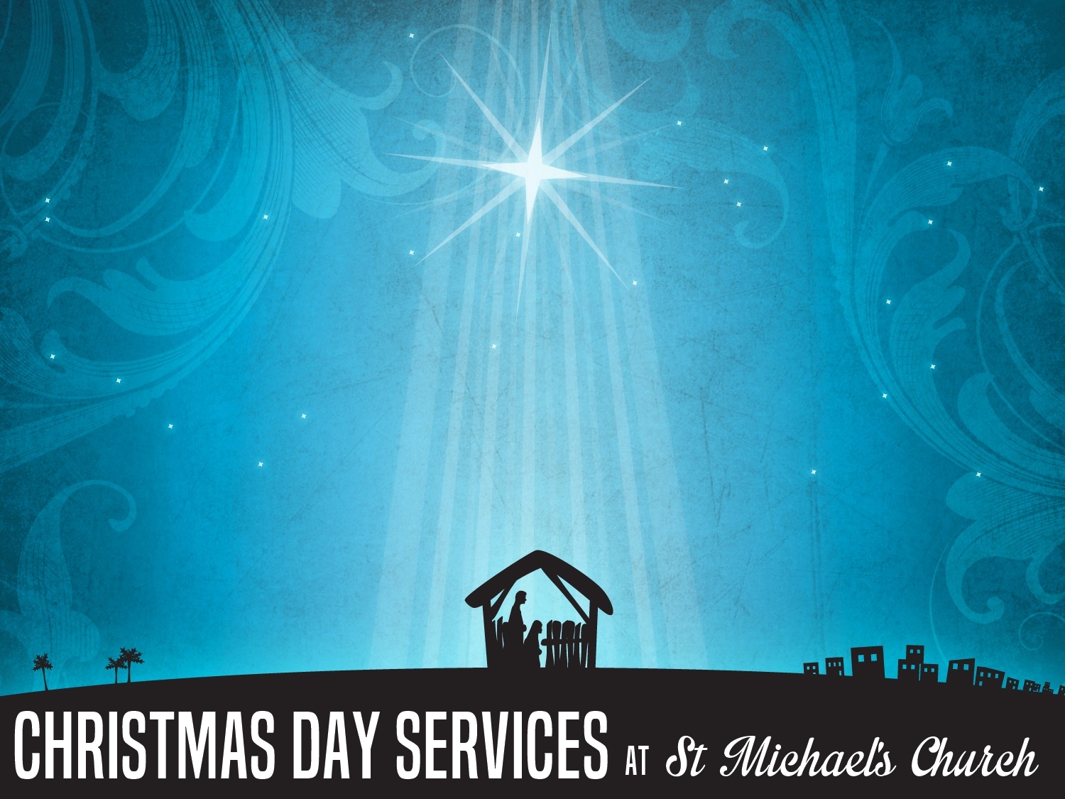 A silhouette of the nativity scene with the words "Christmas Day Services at St Michael's Church"
