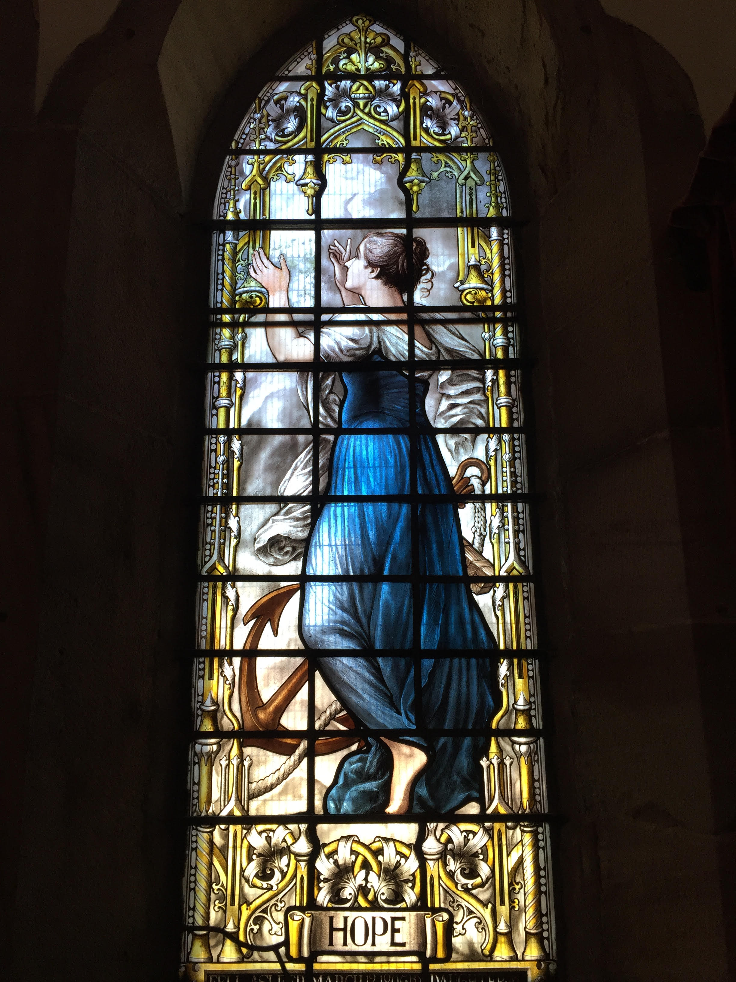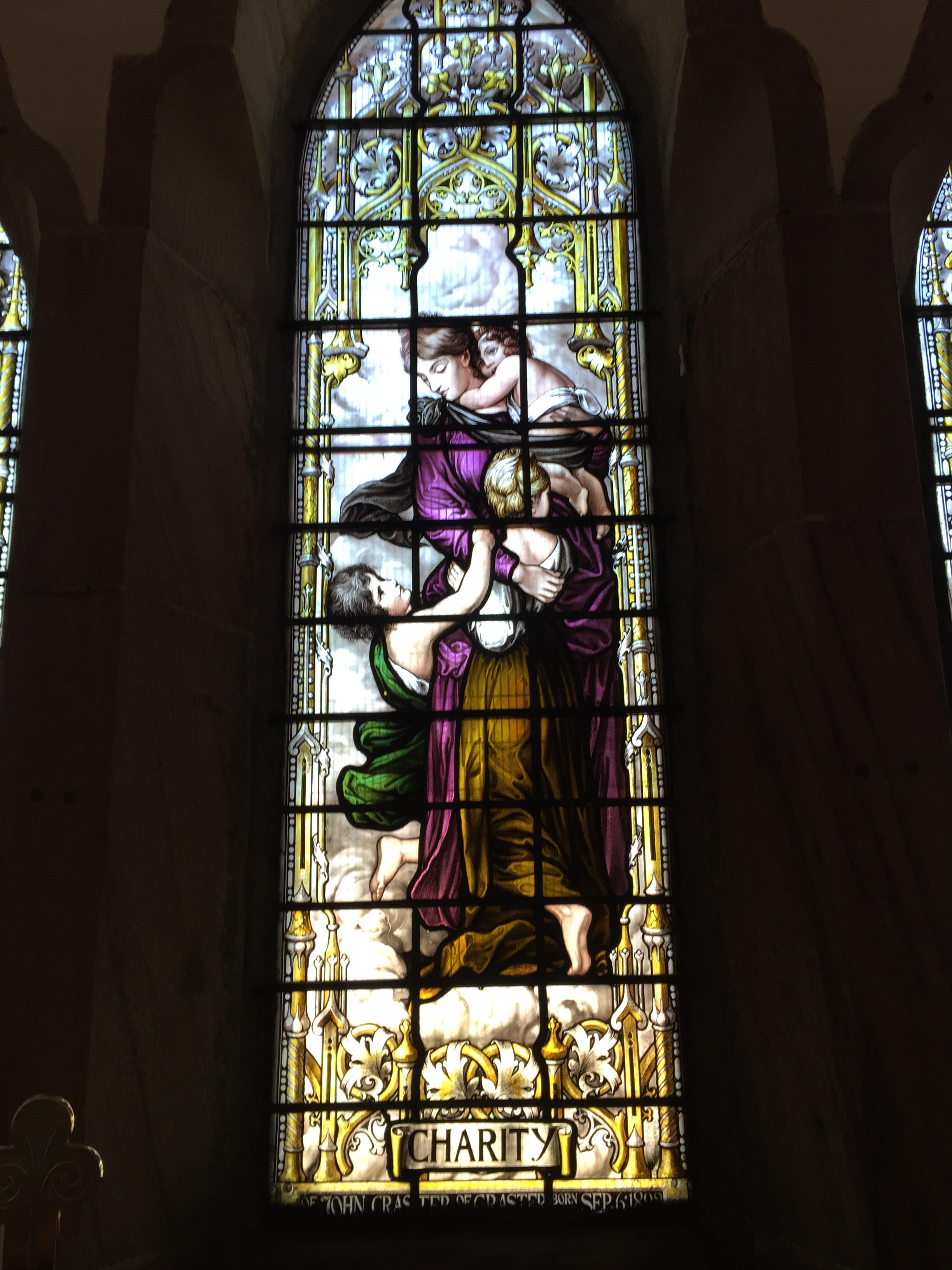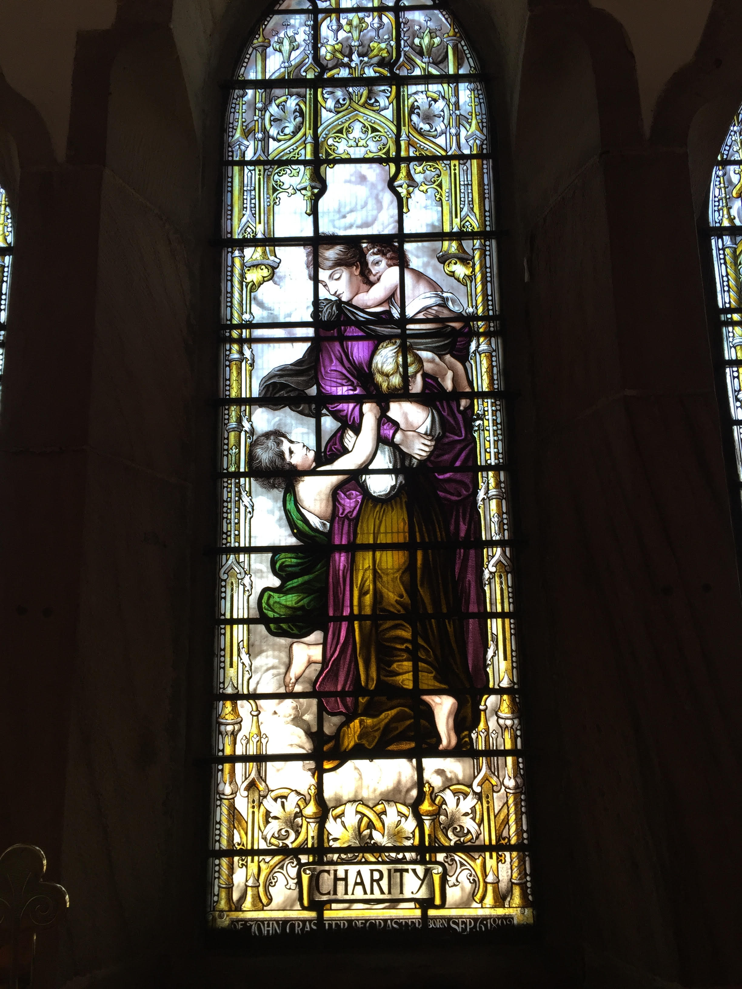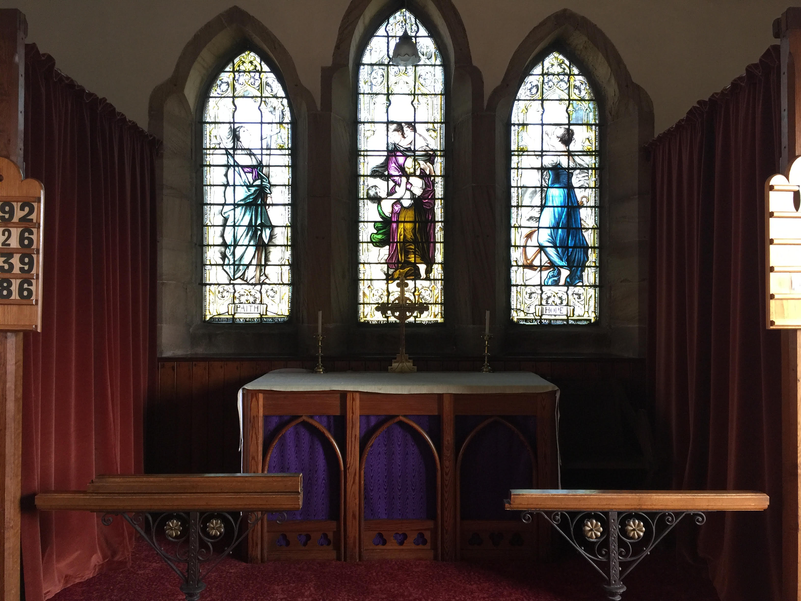 It was very special to visit Craster this morning to preach and preside. They have the most beautiful East windows given by Amy Craster in memory of her Father John Craster who died in 1895. They feature Faith , Hope and Charity and are a copy of part of Sir Joshua Reynolds’ design for the Chapel at New College,Oxford. Do go and have a look!……..& the congregation are beautiful too!