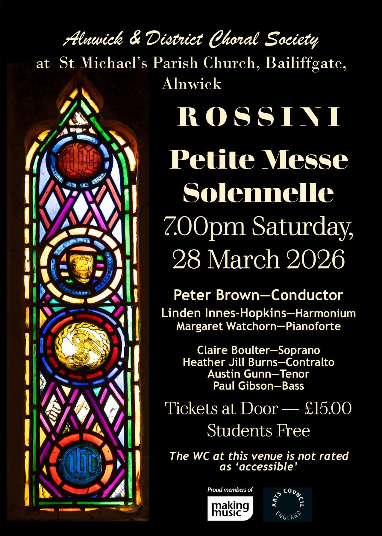 Saturday 28th March at 7.00pm at St Michael’s Church, Alnwick